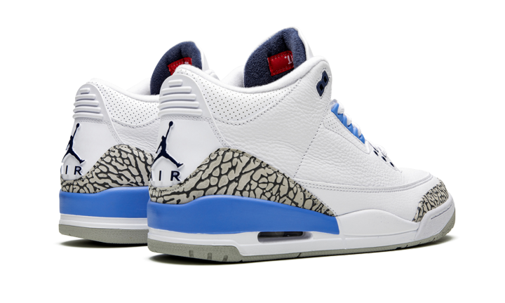 The Air Jordan 3 “UNC” is a Carolina-blue-based colorway of the Jordan 3 design inspired by the University of North Carolina Tarheels. The “UNC” makeup of the Air Jordan 3 first arrived as a player exclusive during the 2018 NCAA Men’s March Madness Basketball Tournament and now re-appears as a separate release for the general public. Similar to the PE version, the retail Air Jordan 3 “UNC” features a white tumbled leather base that includes hits on the toe and mid-panel. Contrasting along the mudguard comes in the form of Air Jordan 3-specific elephant print on the toe, lateral panel, and heel that contrasts a solid white leather mudguard. Completing the look is black Jumpman branding on the heel and a light grey outsole. Release date: Spring 2020.